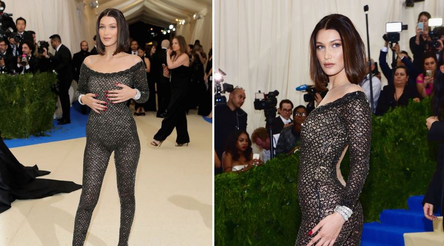 Trước khi trở thành biểu tượng, Bella Hadid từng đối diện chê bai với cách mix-match váy áo. Tại Met Gala 2017, cô diện bodysuit bó sát được làm từ chất liệu ren, đính kết tỉ mỉ từ đầu đến chân. Dù vậy, thiết kế của nhà mốt Alexander Wang vẫn khiến Hadid bị chỉ trích vì phô trương cơ thể quá đà, lộ vòng 2 kém thon. Ảnh: Vogue/Elle.