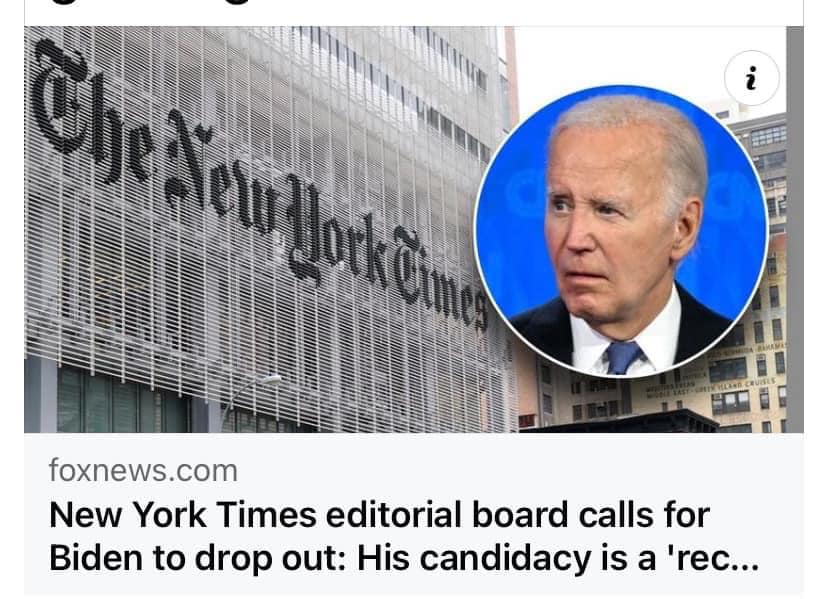 -Newyork Times yêu cầu ông Bidon rời khỏi đấu trường. Báo phe ta đang đánh phe mình. Ai sẽ là người nhập cuộc? Tin rò rỉ mấy tháng nay về bà/ông Michael không phải là tin đồn vô căn cứ. Mỹ đã có TT đen, bống , giờ có lại TT bống, đen cũng không có gì lạ.