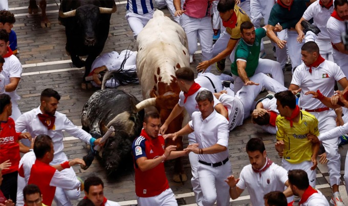 Lễ hội bò đuổi tại Pamplona trong tháng 7. Ảnh: Reuters