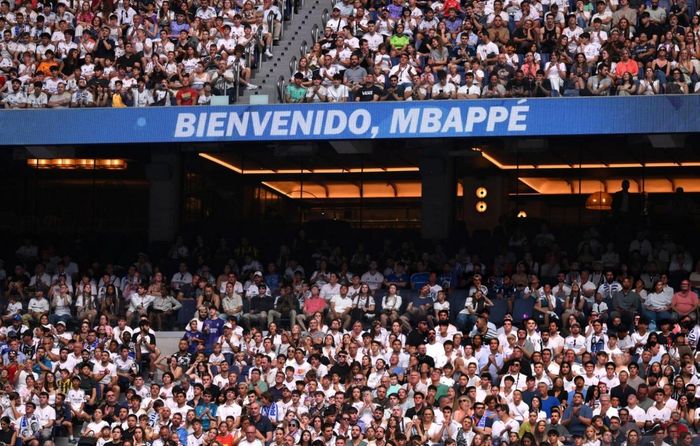 Hàng chục nghìn khán giả đã đến chật kín sân Bernabeu để theo dõi buổi lễ ra mắt của ngôi sao Mbappe tại Real Madrid.