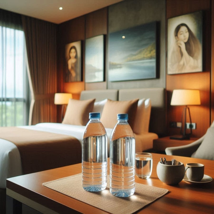 Một pḥng khách sạn sẽ có một vài chai nước miễn phí/ngày (tùy theo quy định của khách sạn, thường là 2 chai). Ngoài ra, trong minibar của pḥng c̣n có một số loại đồ uống khác (có thể có cả nước khoáng). Với những sản phẩm trong minibar, bạn sẽ phải trả phí theo quy định của khách sạn.