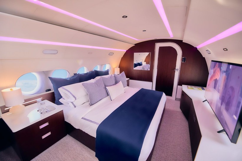 Máy bay tiệc tùng 9H-FIVE, được ra mắt vào năm 2023 bởi thương hiệu khách sạn sang trọng FIVE (Ảnh: CNN)