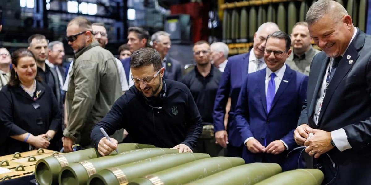 Ông Zelenskyy rõ ràng sẽ bị kẹt vì hành động thiếu tính chính trị này, vì ông đã đến một nhà máy chế tạo vũ khí tại Pensylvania và cười tươi khi ký tên lên trên một quả bom, bà Đại sứ Markarova cũng tươi cười bên cạnh.
