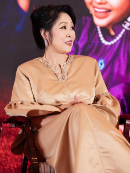 Ở lần xuất hiện này, NSND Hồng Vân diện đầm lụa màu kem quý phái, toát lên khí chất hào môn. Nữ diễn viên đeo thêm trang sức đính đá lấp lánh, trang điểm chỉn chu. Tạo hình này hoàn toàn phù hợp với vai diễn của NSND Hồng Vân trong phim - một người phụ nữ quyền lực, giàu có.