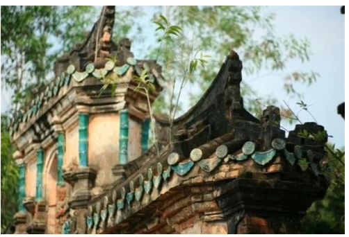Cổng tam quan được trang trí bằng ngói gốm men xanh