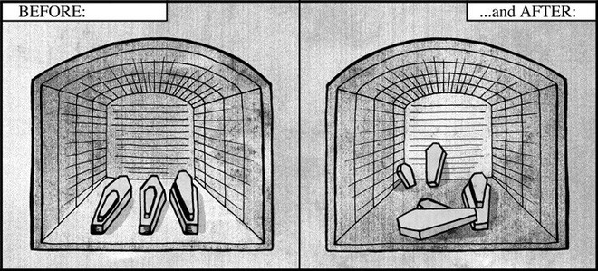 Và câu chuyện vẫn chưa chấm dứt. Bởi cho dù các thành viên trong ḍng họ Chase có t́m đủ mọi cách để bảo vệ hầm mộ của gia đ́nh th́ cứ mỗi lần chôn cất một người thân, họ lại phải chứng kiến cảnh những chiếc quan tài chạy khỏi vị trí mà lần trước họ đă đặt chúng.