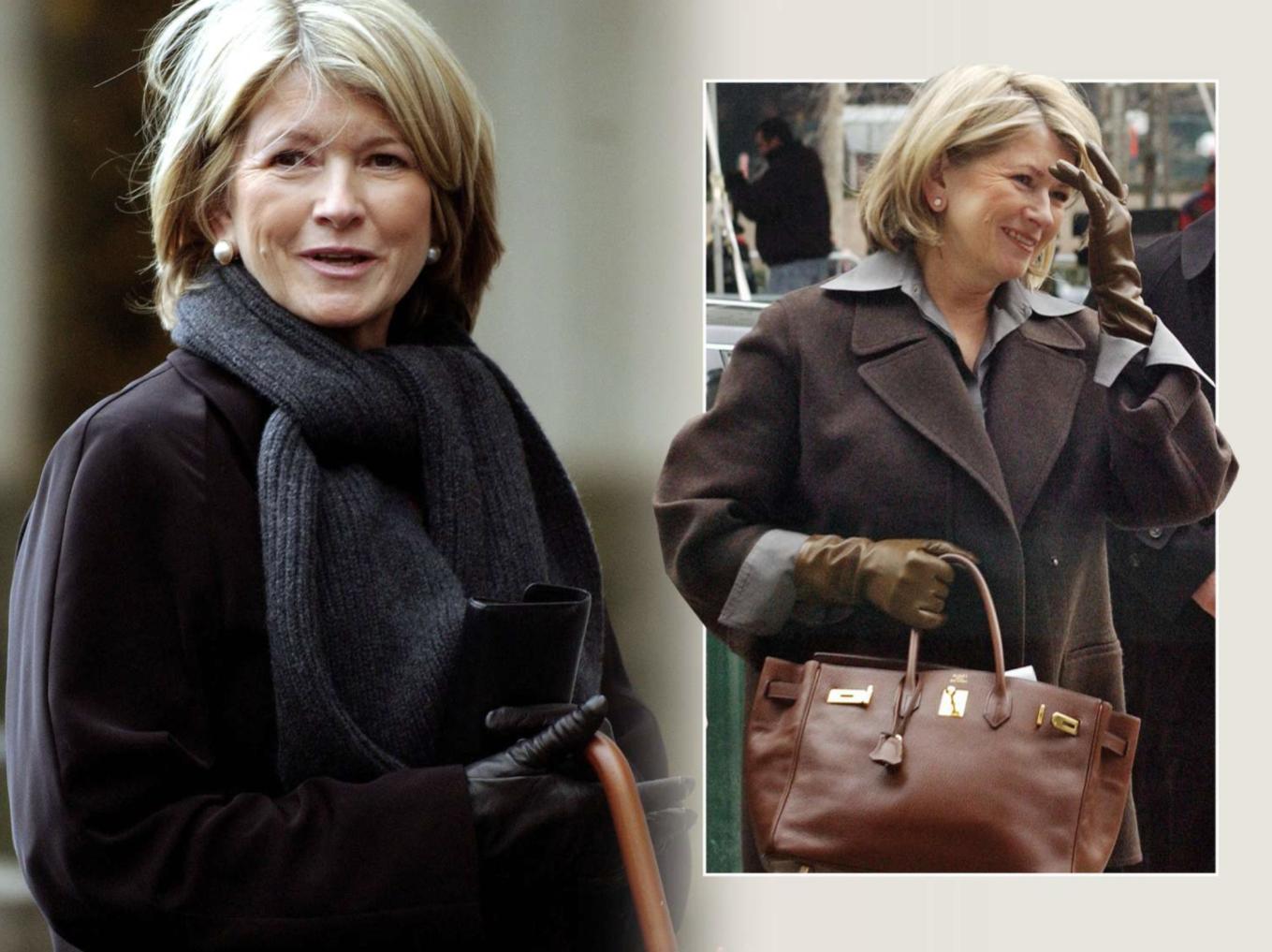 Martha Stewart xách túi Hermès trị giá 10.000 USD, tới ṭa trong phiên xử tháng 3/2004. Ảnh: In Style
