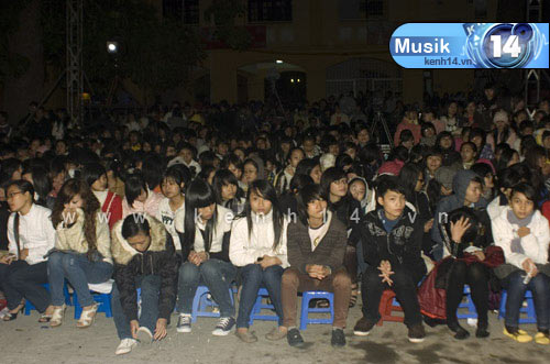 Thời tiết Hà Nội bất chợt lạnh buốt và mưa phùn khó chịu, tuy nhiên điều đó không hề ảnh hưởng đến bữa tiệc âm nhạc sôi động dành riêng cho các bạn học sinh Hà thành vừa diễn ra tại trường Phan Đình Phùng vào tối qua. Sân trường chật kín không còn chỗ trống, một lượng lớn khán giả đã phải theo dõi chương trình qua hai màn hình lớn bên cạnh sân khấu trong không khí vô cùng "nóng".