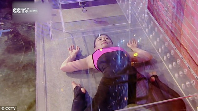 Mở đầu màn trình diễn, cô gái 28 tuổi chui vào trong một chiếc hộp nhựa trong suốt trước khi uốn lượn cơ thể theo các bậc thang bằng kim loại. Sun có lúc phải dừng lại để đẩy búi tóc của cô qua khe thang, rồi di chuyển tiếp.