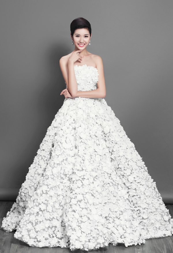 Phương Linh ghi điểm với chiếc đầm dạ hội trắng nhẹ nhàng, bay bổng ở Hoa hậu Quốc tế 2016.