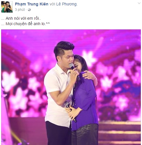 Mới đây nhất, trên trang cá nhân của mình, ca sĩ Phạm Trung Kiên bất ngờ đăng tải hình ảnh anh tay trong tay tình tứ bên Lê Phương kèm dòng chú thích mang đậm chất "ngôn tình" rằng, "Anh nói với em rồi. Mọi chuyện để anh lo".