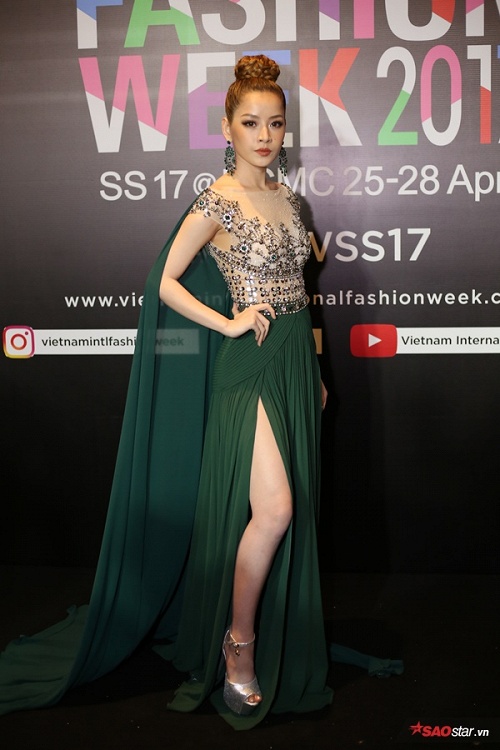 Chi Pu càng ngày càng chứng tỏ sự trưởng thành, cả về nhan sắc lẫn gu ăn mặc khi hôm qua, chiếc váy xẻ tà táo bạo kết hợp mái tóc tết búi cao, thêm đôi hoa tai cùng tông và phần áo nạm đính tinh xảo đã khiến cô rực rỡ như một “nữ thần”. Lần xuất hiện này, Chi Pu đã diện thiết kế từ người bạn thân thiết Đỗ Long để tham dự show trình diễn của chính anh.