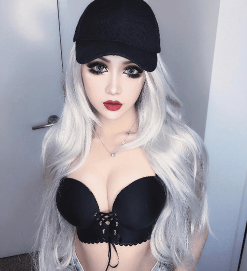 Hot girl này thường trang điểm sắc sảo với lens mắt màu nổi bật, sống mũi cao, đôi mắt to hút hồn cùng đôi môi trái tim gợi cảm. Làn da trắng sứ khiến nhiều người lầm tưởng Kina Shen là "búp bê sống" đến từ châu Âu.