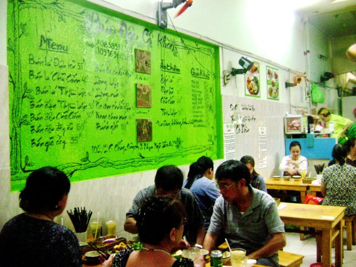 Trở lại quán bún đậu mắm tôm của Trang Trần, quán này rất đông khách, đặc biệt là vào giờ trưa và chiều tối.