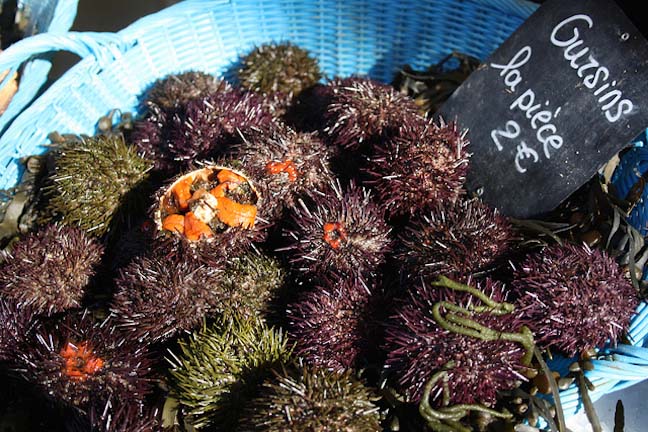 Oursins (nhím biển) khá khó ăn, với mùi vị của muối trộn lẫn với tảo thối khiến thực khách choáng váng khi nếm thử lần đầu.