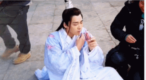 Trương Tiểu Phàm (Lý Dịch Phong) "phá lên cười" khi được tổ đạo cụ cho uống "siro dâu" để chuẩn bị cho cảnh quay thổ huyết vì bị thương trong "Tru tiên: Thanh Vân chí".