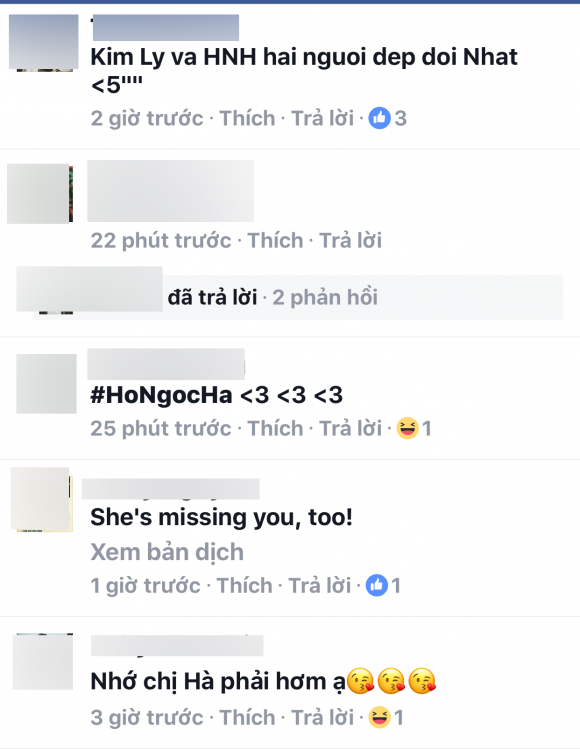 Mới đây, Kim Lý vừa treo status đầy tình cảm: "Missing you". Ngay lập tức Hà Hồ là người bình luận đầu tiên. Cô không viết bằng chữ mà để một biểu tượng nhíu mày cực dễ thương. Nhiều fan khác vào hỏi thẳng Kim Lý có phải anh đang nhớ Hà Hồ hay không thì anh không ngại ngần hay giấu diếm, lập tức thả tim thay cho câu trả lời. Một số khác tiếp tục ủng hộ Kim Lý và Hà Hồ nên duyên vì họ quá đẹp đôi.