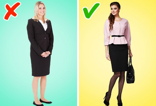 Đôi giày bệt khiến cổ chân bạn có vẻ to hơn và điều này làm chân bạn trông như hai chiếc bánh mỳ dài hay những chiếc cột lớn. Điều này đặc biệt không phù hợp khi kết hợp với đồ công sở. Vì thế, tốt hơn là nên lựa chọn một đôi giày cao gót.