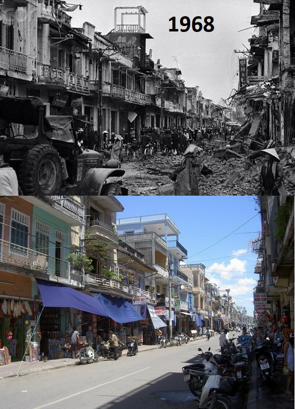 Tết Mậu Thân 1968 ... Như bao địa điểm khác ở Huế phải gánh chịu thê lương , phố Ngă giữa - Phan Bội Châu bị tàn phá nghiêm trọng, thiệt hại nặng nề ...
