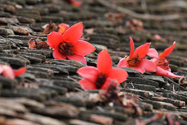 Hoa nở đỏ rực như xua tan đi sự ảm đạm của những ngày cuối mùa xuân. Tạo nên những mảng màu ấn tượng và ấm áp.