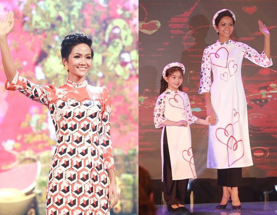 Cách vẫy tay theo kiểu chào hoa hậu theo sát H'Hen Niê ở những lần trình diễn áo dài đầu tiên sau đăng quang. Sự lạnh lùng thường thấy của một người mẫu chuyên nghiệp hoàn toàn biến mất.