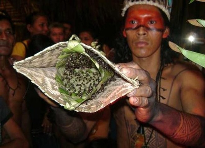 Đeo găng kiến độc: Bộ tộc Satare-Mawe ở vùng Amazon thuộc Brazil gài hàng chục con kiến đầu đạn (loại kiến độc đến mức vết cắn của chúng đau như trúng đạn) vào một găng tay đan từ lá cây. Các thiếu niên phải đeo găng tay này và chịu đựng những vết cắn trong suốt 10 phút, lặp lại 19 lần nếu muốn được công nhận là người trưởng thành. Thường thì cơn đau sẽ kéo dài nhiều tháng sau khi nghi lễ hoàn tất.