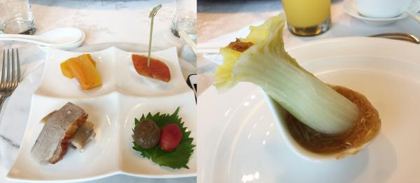 Món khai vị gồm cà chua, rau... cùng bắp cải Jadeite với nước sốt sò điệp khô là những món "đặc trưng" hương vị xứ Đài ở Silks Palace, trong Bảo tàng Cung điện Quốc gia.