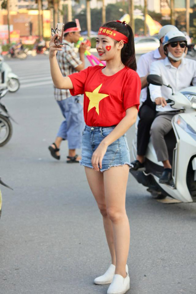 Diện áo cờ đỏ sao vàng đi cổ vũ cho các chân sút nước nhà