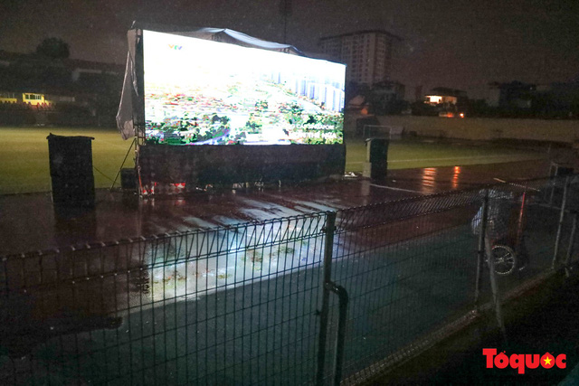 Tại SVĐ Hàng Đẫy, màn hình LED kích thước hơn 50 m2 cùng dàn âm thanh, ánh sáng hiện đại đã được lắp đặt nhằm phục vụ người hâm mộ thủ đô theo dõi và tiếp lửa cho đội tuyển Việt Nam thi đấu.