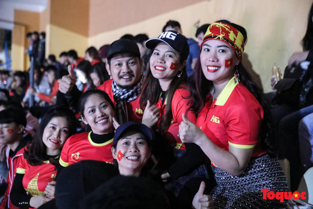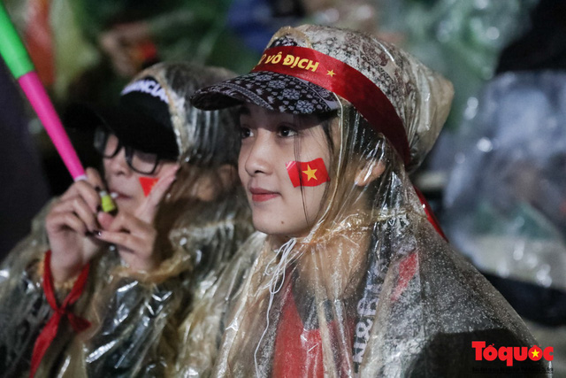 Đặt niềm tin chiến thắng vào đội tuyển Việt Nam trong trận chung kết lượt đi AFF Cup 2018 diễn ra tại Malaysia. Mặc dù thời tiết Hà Nội đang rất lạnh và mưa nhưng cổ động viên vẫn đến sân vận động Hàng Đẫy cổ vũ đội tuyển Việt Nam.