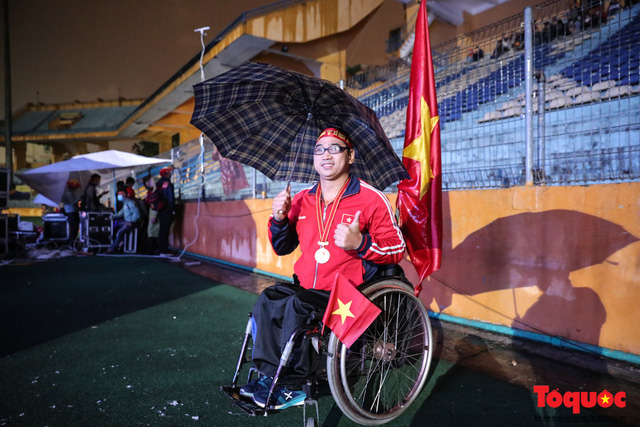CĐV khuyết tật cùng lá cờ đỏ sao vàng đến từ rất sớm để cổ vũ cho ĐT Việt Nam.