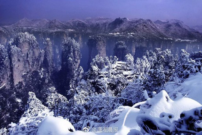 Hẳn mọi người khi xem những bức hình sau cũng phải lặng người trước vẻ đẹp băng tuyết phủ trắng xóa tại Trương Gia Giới. Nơi đây vẫn được ca ngợi sự hùng vĩ của Trương Gia Giới. Khi mùa đông tới thì vẻ đẹp kỳ ảo ở đây như lạc sang hành tinh khác.