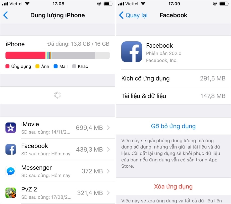 Cách dọn dẹp ứng dụng Facebook trên iPhone.