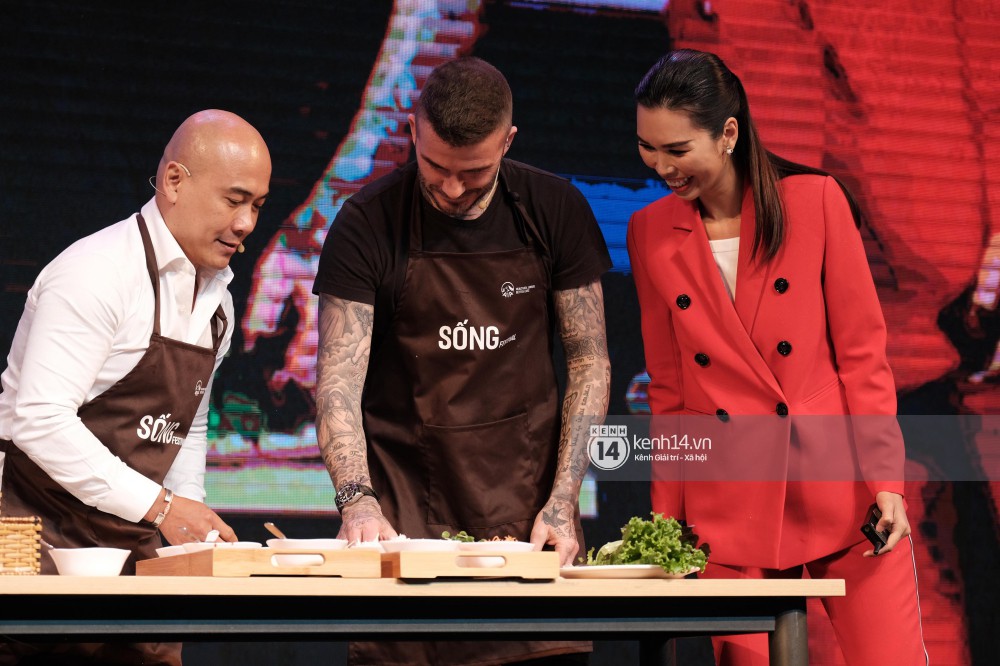 Ngoài phần giao lưu với khán giả, ngôi sao bóng đá nước Anh còn gây thích thú khi học làm gỏi cuốn Việt Nam.