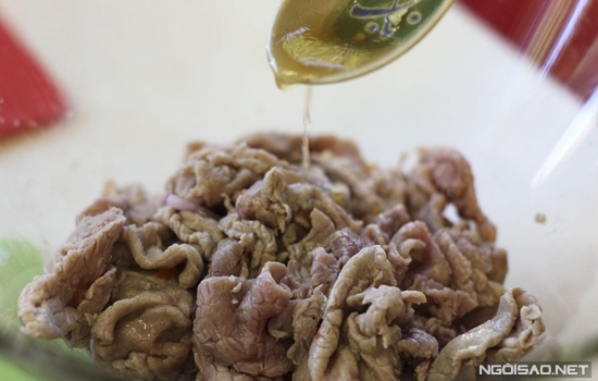 - Thịt bò thăn thái lát mỏng, chần sơ qua nước sôi, để ráo.