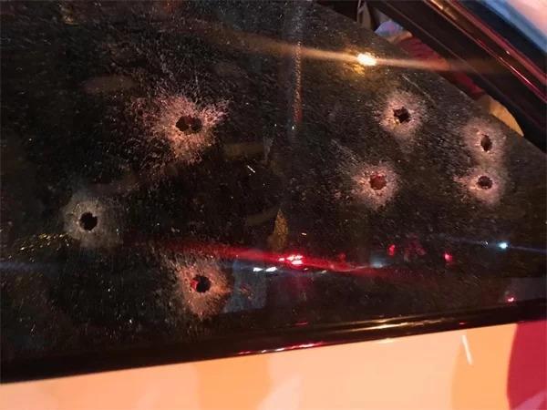 Cửa kính xe của Mark Batchelor bị nhiều phát đạn.