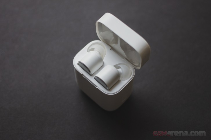 Nắp được gắn vào một bản lề lò xo và đóng kín nhờ từ tính. Khi mở nắp chiếc Mi True sẽ có cảm giác hơi lỏng lẻo và cảm giác trọng lượng không nhẹ như vỏ AirPods. Nó cũng không mở đủ rộng, luôn có nguy cơ gập ngay xuống khi ở vị trí mở. Tuy nhiên, khi đóng lại thì Mi True sẽ ở trạng thái tắt nguồn và không rơi ra ngay cả khi bị lắc rất mạnh. Bên trong vỏ là hai hốc lớn cho từng chiếc tai nghe. Các tiếp điểm để sạc ở đáy các hốc, tương tự như vỏ AirPods.