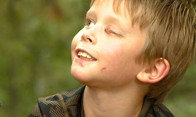 Mắt trái vẫn còn khâu, nhưng Pike đã khỏe mạnh và đi học trở lại. Ảnh: New York Post.