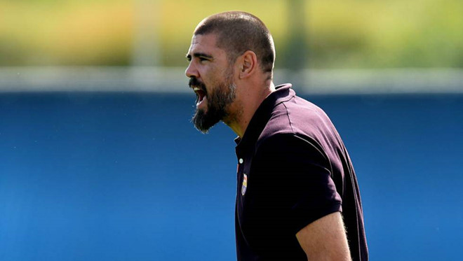 Valdes trong vai trò HLV đội U19 Barca. Ảnh: Getty Images.