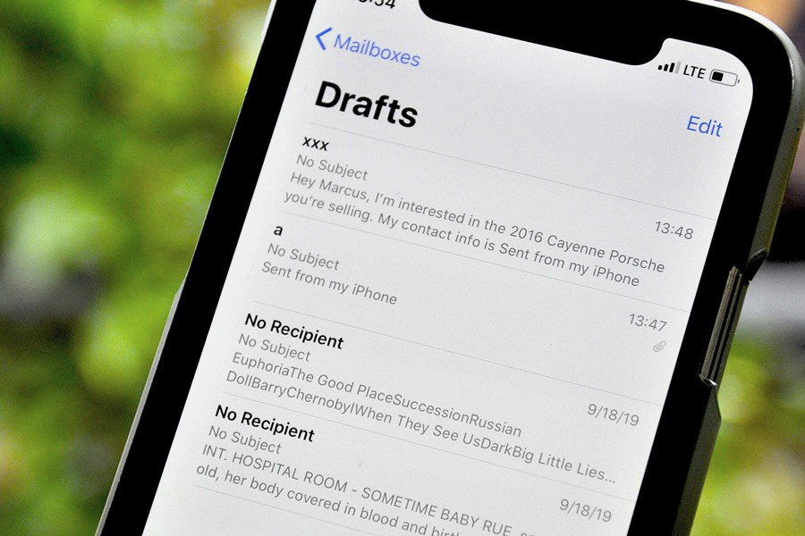 Tương tự những trình quản lý email khác, ứng dụng Mail của iOS cũng lưu tất cả email bạn chưa hoàn thành vào thư mục Drafts (Nháp) cho đến khi bạn gửi hoặc xóa chúng. Bạn có thể truy cập tất cả thư nháp thuộc tất cả tài khoản trong thư mục tổng hợp All Drafts (Tất cả thư nháp). Tuy nhiên mặc định, thư mục này không xuất hiện trong trong trình đơn Mailboxes (Hộp thư) chính của ứng dụng. Nếu muốn sử dụng nó, bạn phải bật nó thủ công bằng cách bấm nút Mailboxes (Hộp thư) ở phía trên góc trái, sau đó bấm nút Edit (Sửa), cuối cùng bạn chọn All Drafts (Tất cả thư nháp), và bấm nút Done (Xong).