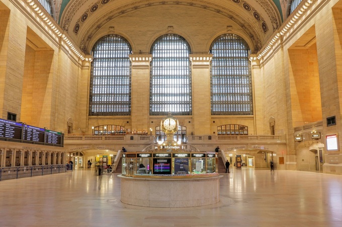 Nhà Ga Trung Tâm (Grand Central Terminal) tại Manhattan, thành phố New York, Mỹ. Nhà ga này là một địa điểm nổi tiếng, trung tâm giao thông và là phòng trưng bày nghệ thuật công cộng ở New York. Ảnh: Andrew Kelly/Reuters