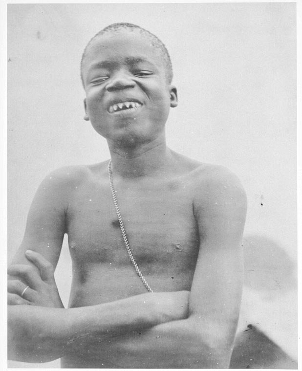 Một người đàn ông da đen bé nhỏ, cao chỉ gần 1m5 và nặng khoảng 46,7kg, đã bị biến thành người mẫu trưng bày trong sở thú. Bị gán cho biệt danh "người lùn Công nguyên thủy", anh bị nhốt giữ cùng chuồng với một con đười ươi ở đó.