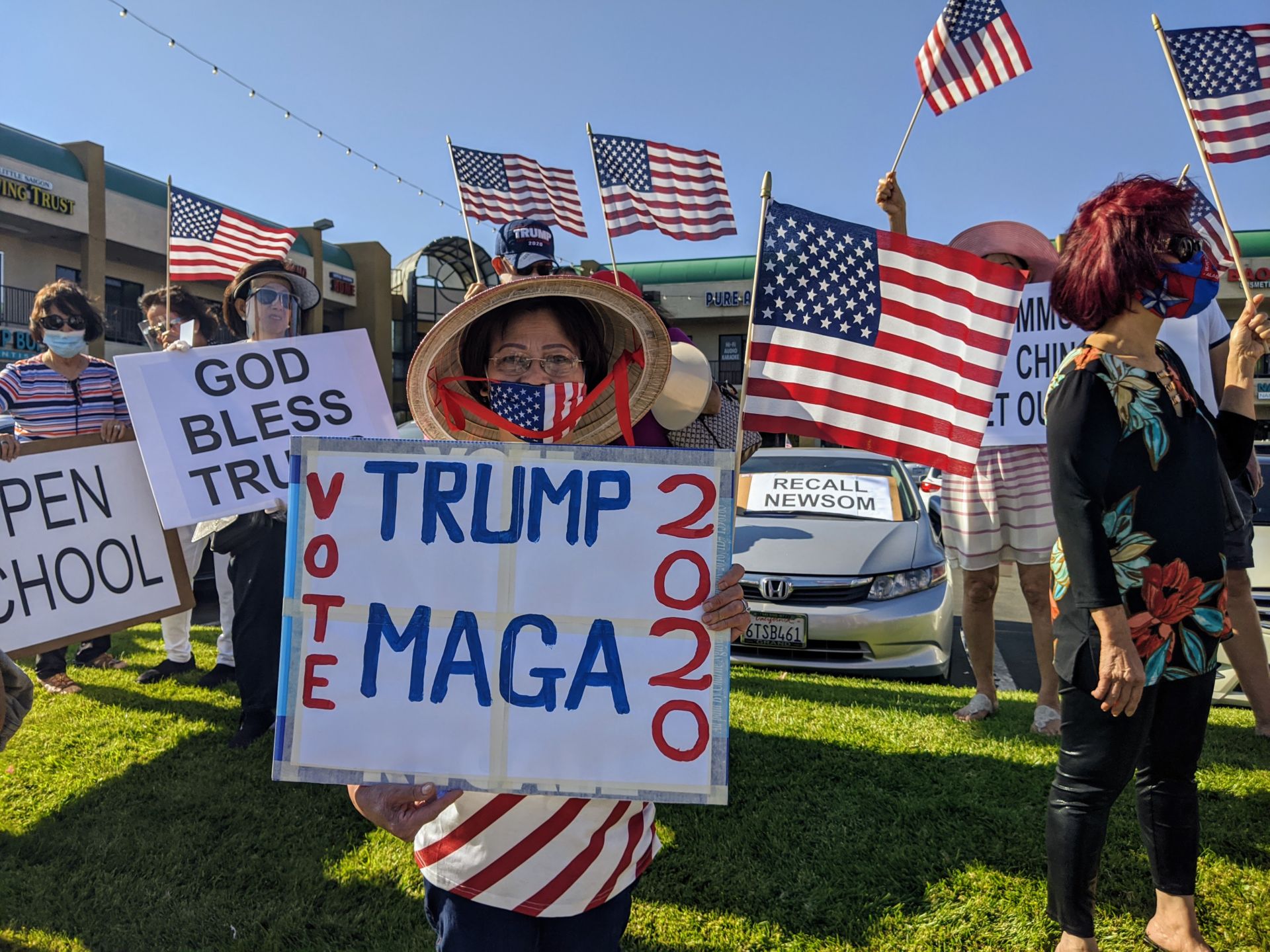 Trong lúc đám đông hô hào, ông Danny nói với phóng viên Người Việt: “Tôi đến đây để ủng hộ ông Donald Trump thêm bốn năm và phải mở cửa các doanh nghiệp lại. Tôi ủng hộ bãi nhiệm thống đốc California vì ông làm việc với Trung Quốc, không hề nhắc gì đến họ, mà cứ đè ông Trump ra hành hạ vì tiền.”
