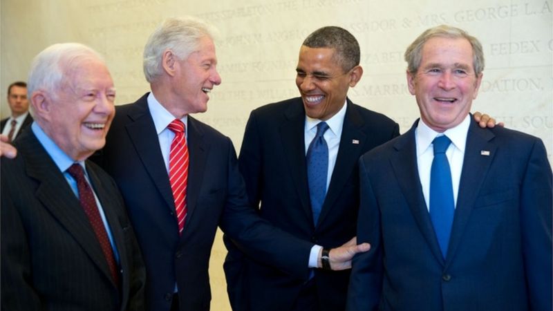 Các cựu tổng thống Mỹ từ trái qua: Jimmy Carter, Bill Clinton, Barack Obama và George W Bush