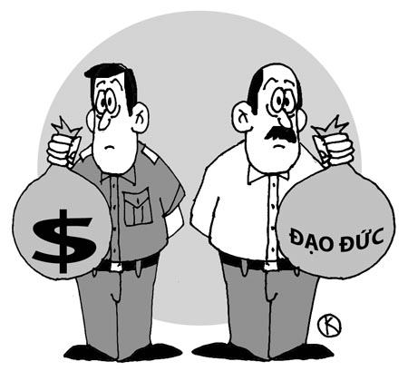 - Này con, giả sử bây giờ trước mặt chúng ta có hai gói, một gói ĐẠO ĐỨC và một gói TIỀN, chỉ được nhặt một gói thôi thì theo con, con nhặt gói gì?