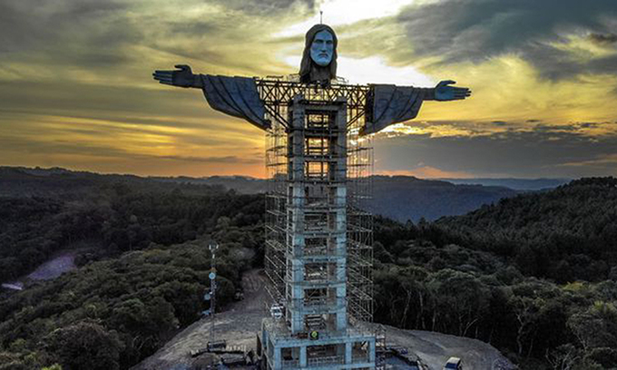 Bức tượng Chúa Jesus được hoàn thiện phần đầu và hai cánh tay dang rộng tuần này, sau khi chính thức khởi công năm 2019 tại thành phố Encantado, bang Rio Grande do Sul. Tượng được dự kiến hoàn thành vào cuối năm nay, theo Hiệp hội Friends of Christ, tổ chức điều phối công trình.