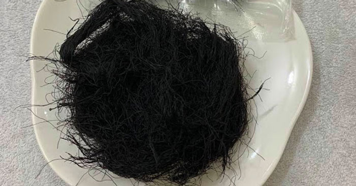 Rong tóc tiên được chế biến ở dạng khô thành từng búi, trông giống như một khối tóc rối của con người. Rong tóc tiên có màu đen và có thơm nhẹ mùi rong rêu.