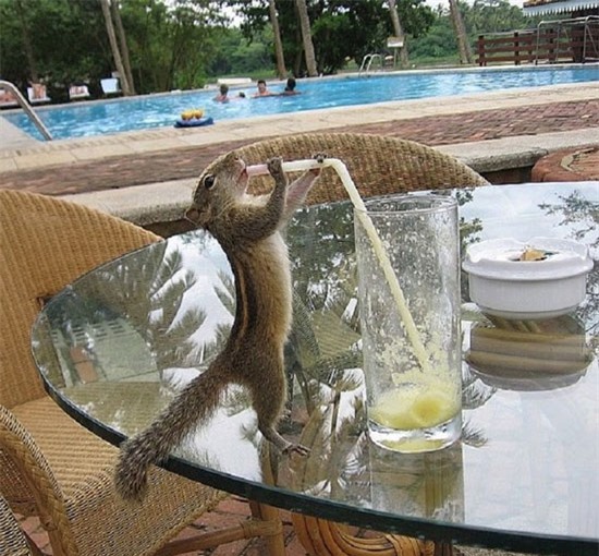 Sóc chuột cũng rất lịch sự, uống bằng ống hút như con người.