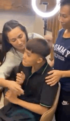 Có thể thấy, cả nhà Phi Nhung cùng vài sư cô đang tổ chức 1 buổi livestream trong Ngày của Mẹ, nữ ca sĩ đề nghị mẹ ruột Hồ Văn Cường đứng cạnh để nghe con trai chúc nhưng cả hai đều tỏ ra rất gượng gạo. Giữa lúc mẹ ruột Hồ Văn Cường đang bối rối, Phi Nhung gây tranh cãi khi có động tác đẩy mạnh tay, thậm chí còn ghì đầu người phụ nữ kia xuống để ép hôn con trai. Dễ dàng nhận ra Hồ Văn Cường vô cùng ngại ngùng, thậm chí còn có biểu cảm hơi khó chịu. Chưa hết, trong 1 khoảnh khắc, Phi Nhung còn ôm hôn và thể hiện tình cảm mạnh quá đà với Hồ Văn Cường.