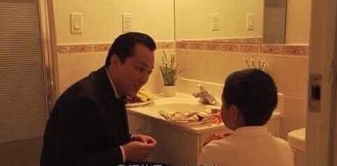 Liên tục có khách đến ân cần gõ cửa phòng vệ sinh, chào hỏi hai người rất lịch sự và chúc họ ngon miệng, thậm chí nhiều người cùng ngồi xuống sàn hát những bài hát vui của trẻ nhỏ…